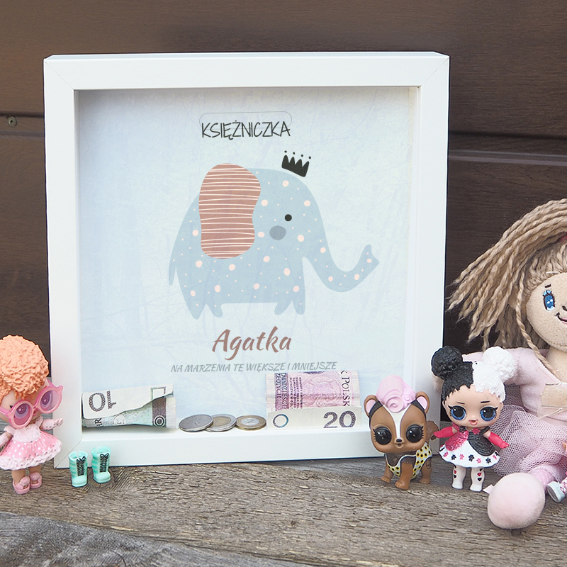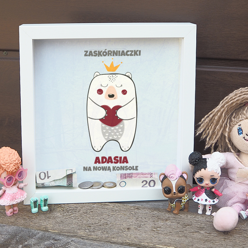 Jak znacząca większość naszych produktów tak i skarbonki w ramce są w pełni personalizowane. Możemy tutaj dodać imię dziecka, zainteresowania czy inne istotne z punktu widzenia rodzica informację. Można też ponieść się działaniom wyobraźni i stworzyć wyjątkowo zabawną skarbonkę zobacz nasz artykuł który opisuje śmieszne skarbonki Personalizacja daje dużą elastyczność a jest to cecha, którą w naszych produktach cenimy najbardziej, bo zależy nam, aby klient miał swobodę wyboru tak, aby dziecko było ze swojej skarbonki zadowolone. Jeśli masz zamiar nabyć skarbonkę dla swojego dziecka, lub poszukujesz prezentu dla dziecka to pomysł ze skarbonką jest bardzo trafiony a jeśli ma to być coś dużego i solidnego to skarbonka w ramce dla dziecka będzie idealną propozycją, na długie lata. Bo co ważne ilustrację w skarbonce można wymienić z czasem na inną i wtedy mamy skarbonkę uniwersalną na długie lata.